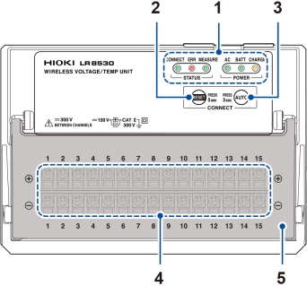 Input terminals Provides input terminals for each channel. The numerics represent the channel numbers. |